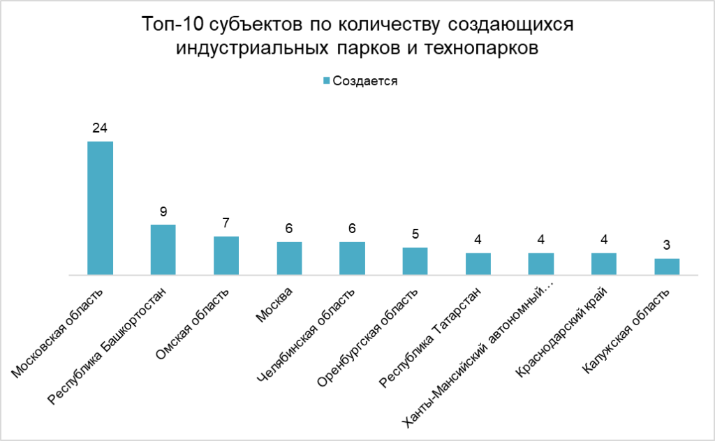 Топ-10 субъектов по количеству индустриальных парков и технопарков